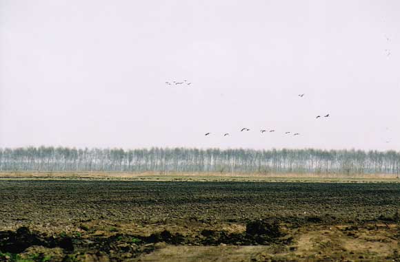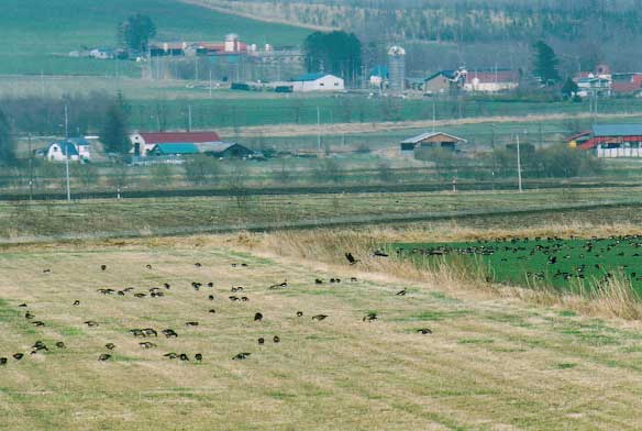 広大な黒土の大地上をマガンが飛んで行く。いかにも十勝らしい光景