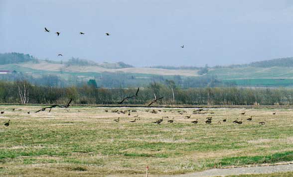 また、今回、ガン類を確認出来たのは浦幌町・三日月沼、豊頃町・大沼と、いずれも沼であ