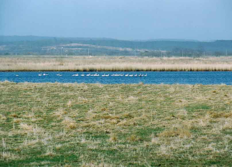 最盛期と比較すると群れは少なくオオハクチョウも数十羽が 羽根を休めていた。小さな沼ではあるが、やはりこれ位の個 体数では物足りなく、寂しいものである。いつもむ思うが渡り 鳥のピークを見極めるのは年により差異があり、地方の者に とっては困難なことである。