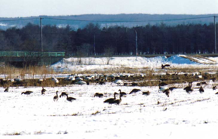 採食地は浦幌町内では豊北地区のみで、その他の地域や豊頃町でも大沼は結氷状態であるな