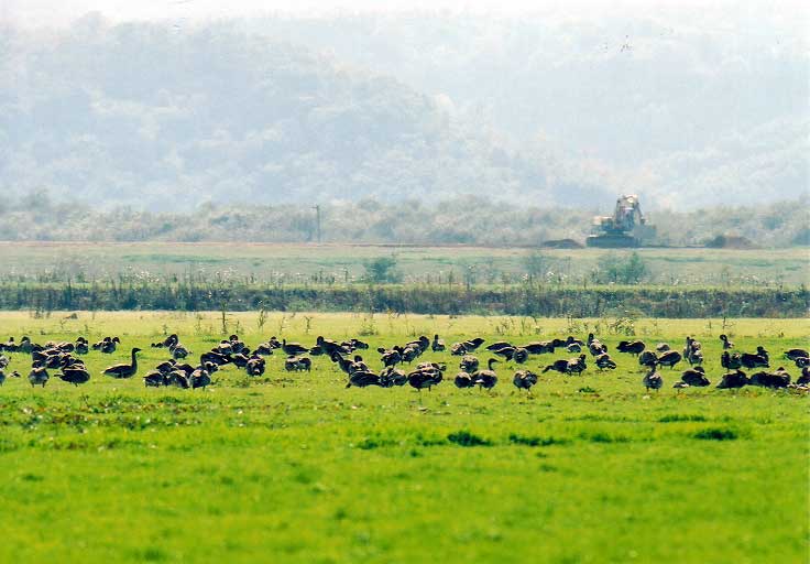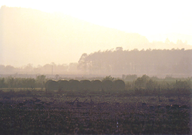 ている段階でガンたちの餌にはなっていない場所が多く、大半は豊頃町幌岡地区の牧草地に群れ