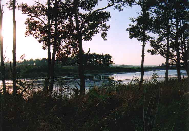 夕闇迫る大沼。この後、多くのオオヒシクイのねぐらになる