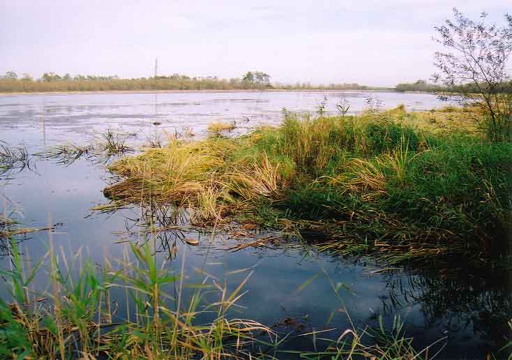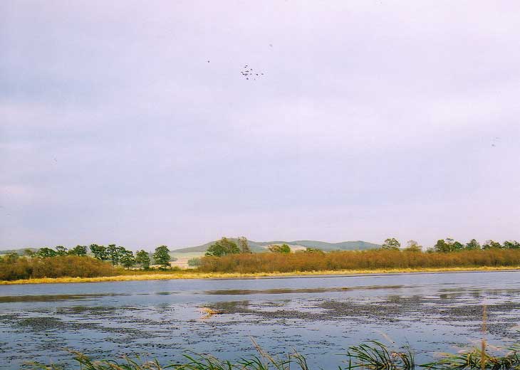 オオヒシクイが首を水中に入れ盛んに採食をしていたが、いかにも水鳥が好みそうな環境