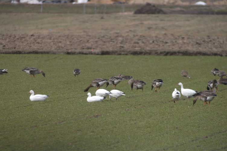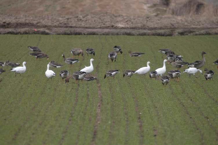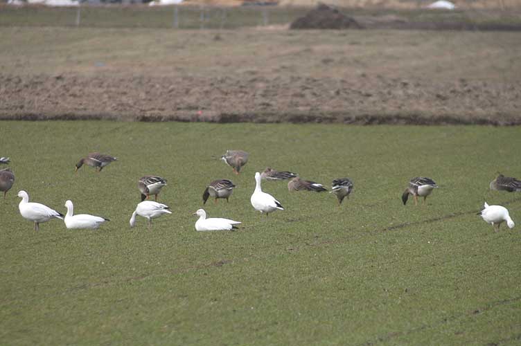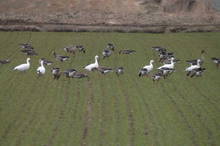 ようやくカメラに収まった6羽のハクガン この日の観察では、5羽と1羽は別行動と同一行動の繰り返し 一番右側が幼鳥、そして残りは全て成鳥と思われる 仲良く一列に並んで水を飲みに出かけるハクガンの群れ 尾羽を撮ろうとハイ、パチリ 無事に北極海へと移動出来ることを念じ別れた