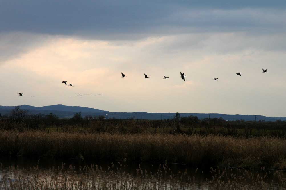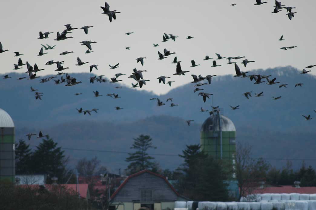 独特の低い鳴き声で飛ぶオオヒシクイには、なんとも言えない魅力がある