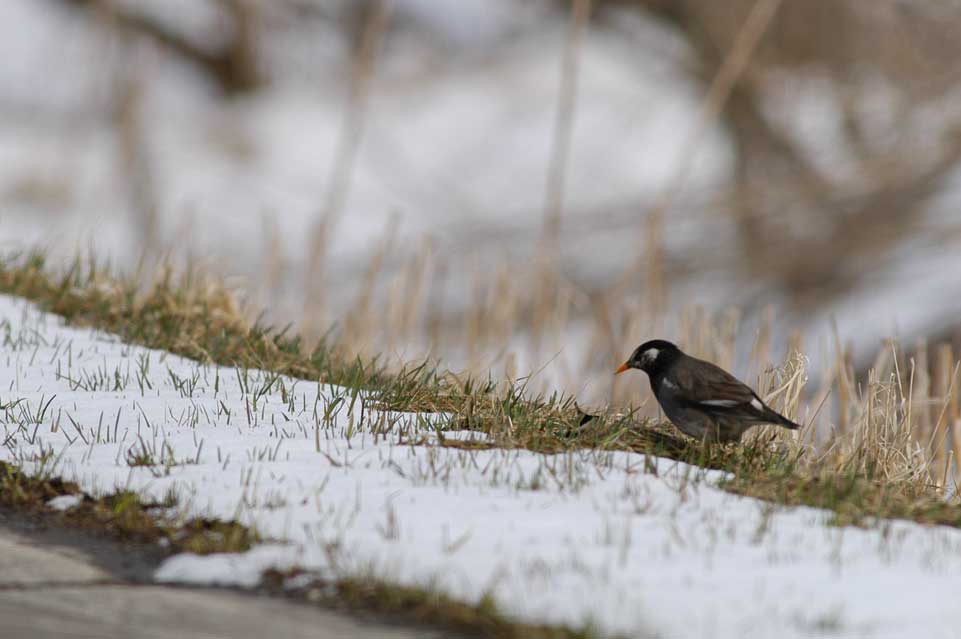 ムクドリも積雪が多く、餌探しが大変