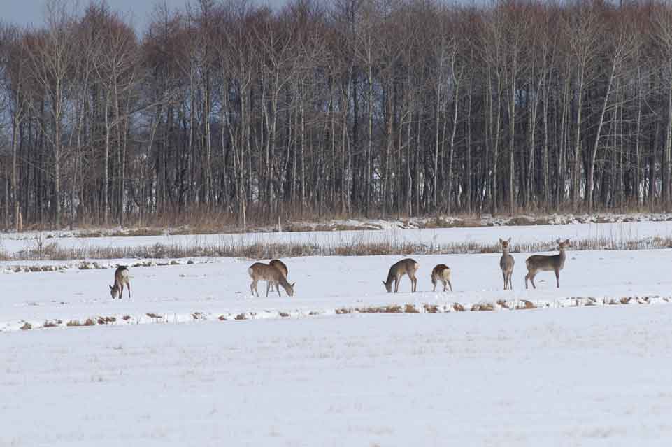 餌を求めてやってきたエゾシカの親子、私は浦幌町では初めての遭遇