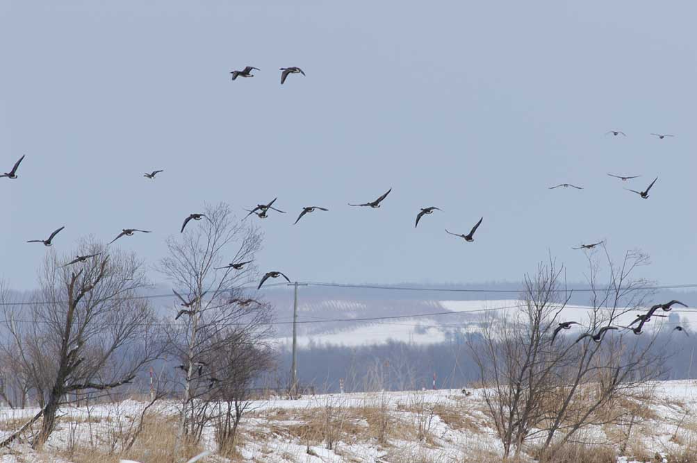 日は吹雪という悪天候。翌日は晴れたもののオオヒシクイ、マガンとも個体数は少なく、これま