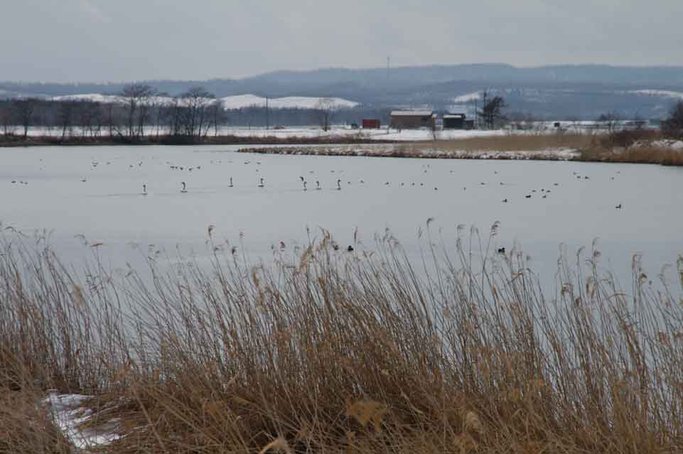 三日月沼でもオオヒシクイの姿は10羽程度