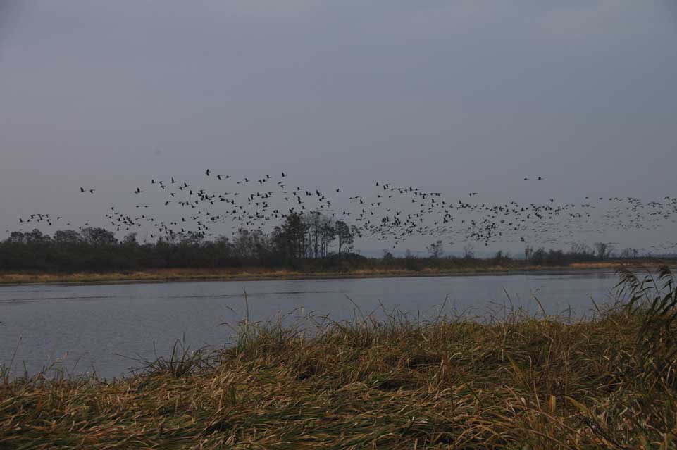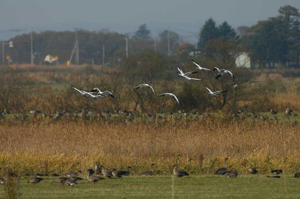 10月18日、まだ多くのオオヒシクイが採食と休息をしていた