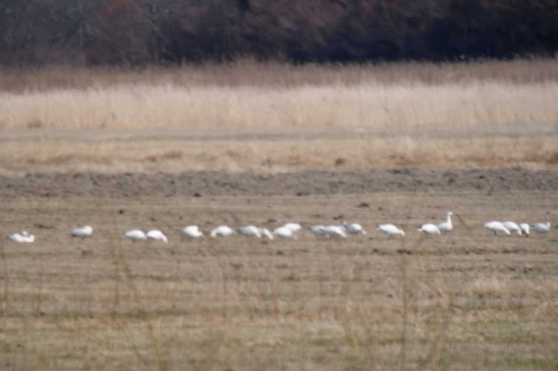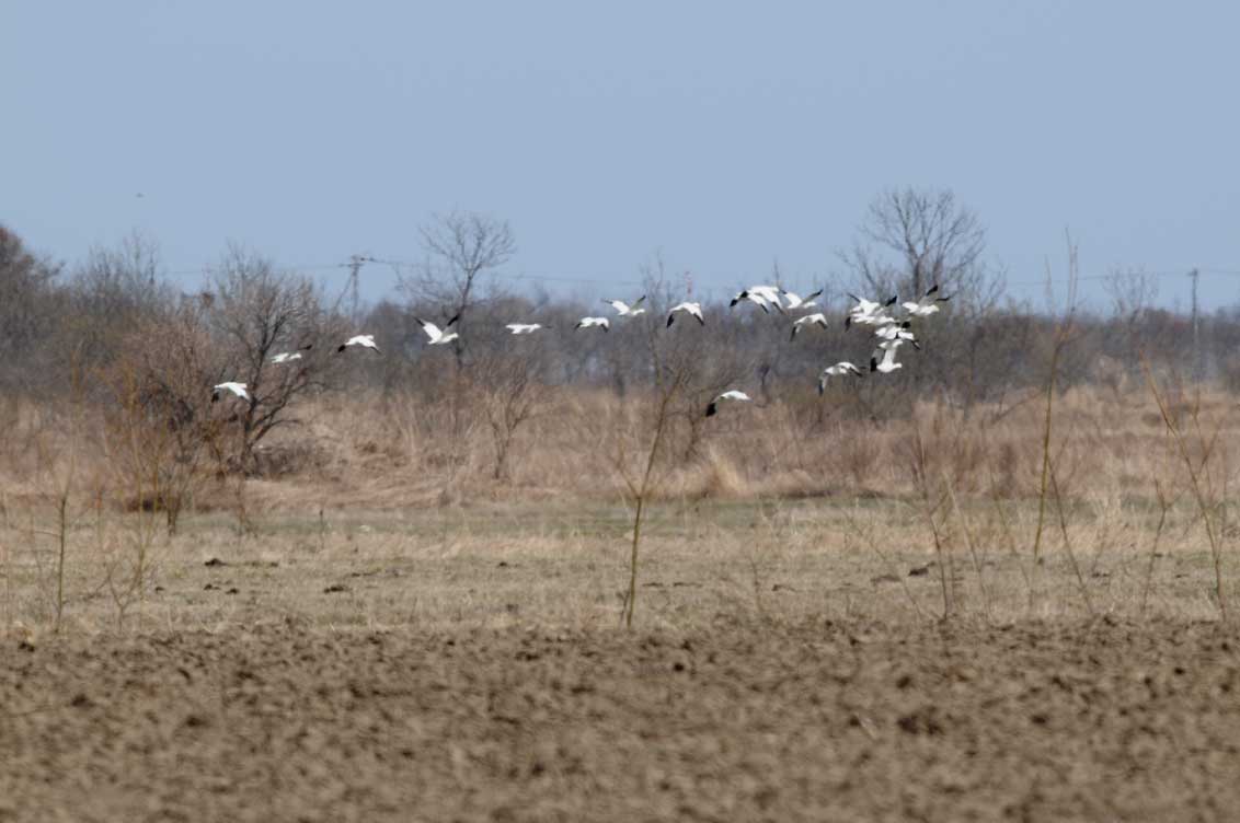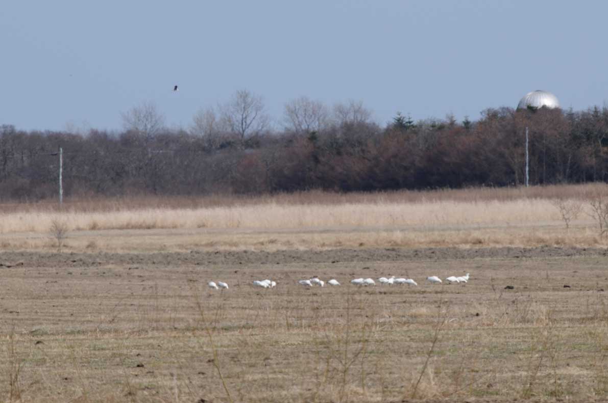 4月18日〜19日、ハクガン24羽を浦幌町豊北で確認した。近づくことは出来なかったので個体特徴など、詳細は分からないが、 昨秋に渡ってきた24羽が、そのまま無事にシベリアへと帰ることができたことに嬉しさを感じるのは私だけではないと思う。